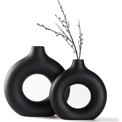 2 Creative Vases for Modern Home Decor, Handmade Vase Black Ceramic Dry Flower Craft Decoration
