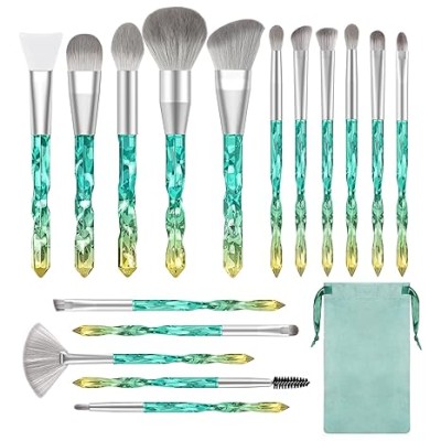 16 crystal handle cosmetic brush set, 1 silicone facial mask brush, 4 mixing sponges and 1 brush cleaner